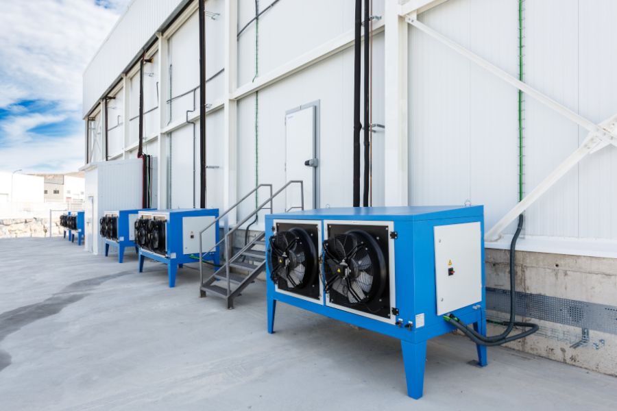 The unit comprises two internal coils, one for cooling and one for heating, and has a ventilation train that distributes hot or cold air inside the space. Various heat sources can be used depending on industry availability: hot glycol, hot gas, hot water, steam or electric heaters. Once the defrosting process is complete, the equipment has a cooling coil to keep the product in optimal conditions.